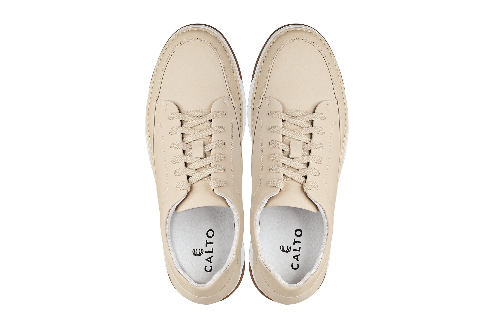CALTO - Y7934 - 2.6 Inches Taller (Ivory White Suede/White & Gum Sole) - Elevated Leather Sneakers
