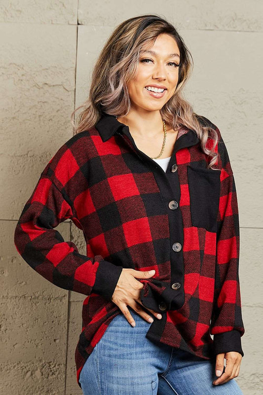 Snap Down Color Block Plaid Jacket