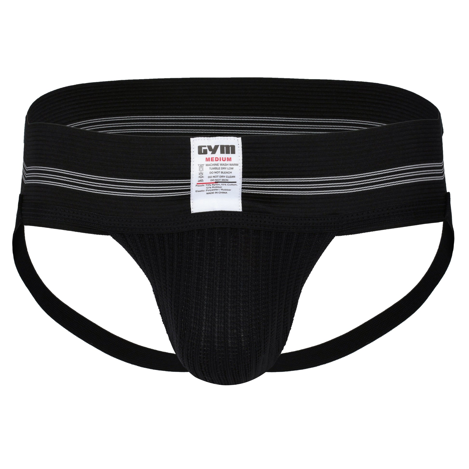 The GYM 3" Old School jockstrap is a classic 3" wide band athletic supporter. The jockstrap is available in 6 colors: White, Black, Royal, Heather Grey, Red or Yellow. Made with a hefty 3" wide waistband and 1/2 leg straps. The waistband on the Black color is different than the other colors and stretches very easily. Do not size up in that color.2.0 Changes: Some slight changes were made to increase the waistband sizing of this product to better match the size chart. Also, pouches were shortened by 1/2 inch in length. The product is now packaged in a polybag instead of a clamshell.